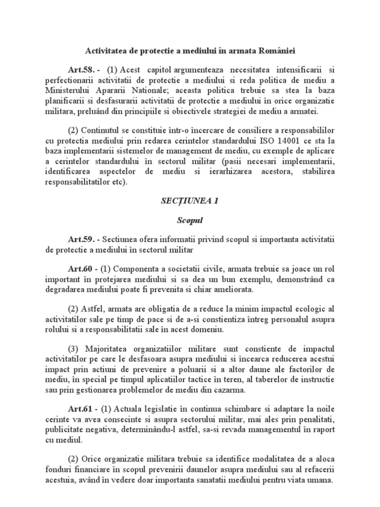 Activitatea De Protectie A Mediului In Armata Romaniei
